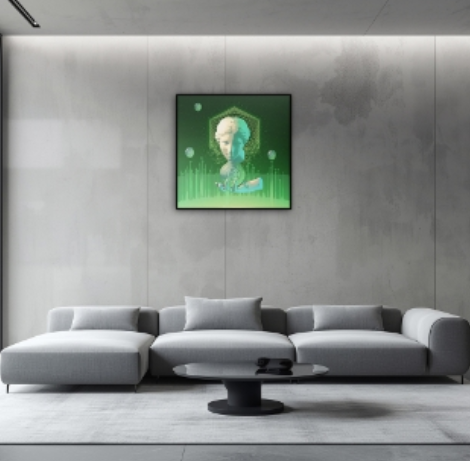 Nàng thơ kỹ thuật số – “Cyber Muse” là hình ảnh giao thoa giữa cái đẹp cổ điển và công nghệ hiện đại. Tác phẩm khơi gợi nguồn cảm hứng sáng tạo mới trong không gian ảo, nơi cảm xúc con người vẫn giữ được sự tinh tế dù đang sống giữa thế giới máy móc. Đây là một tác phẩm dành cho những tâm hồn yêu nghệ thuật đương đại, tìm kiếm sự kết nối giữa công nghệ và cảm xúc.