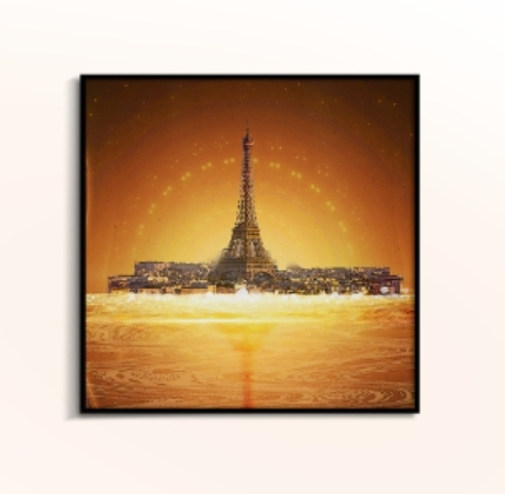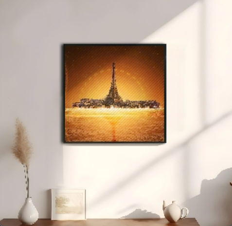 Biểu tượng của nước Pháp – tháp Eiffel – được khắc họa bằng những nét vẽ mềm mại, hiện đại, kết hợp với ánh sáng rực rỡ làm nổi bật vẻ đẹp vừa mạnh mẽ vừa quyến rũ của công trình kiến trúc nổi tiếng này. “Eiffel in the Light” không chỉ tái hiện một hình ảnh quen thuộc mà còn thổi vào đó hơi thở của nghệ thuật đương đại, phản ánh tinh thần tự do và sáng tạo – vốn là bản sắc không thể thiếu của Paris hoa lệ.