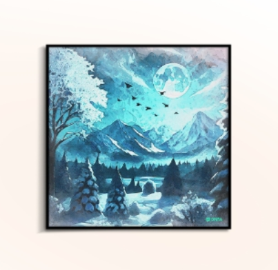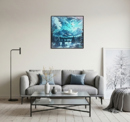 Lạnh giá nhưng hùng vĩ, tĩnh mịch nhưng đầy chất thơ – “The Legend of Winter” tái hiện hình ảnh mùa đông như một câu chuyện cổ tích. Bầu trời xám nhạt, tuyết trắng trải dài, và không gian dường như được gói gọn trong tấm màn sương mờ ảo. Đây là tác phẩm dành cho những ai yêu sự lắng lẽ, chiều sâu nội tâm và những điều giản dị mà tinh khôi. Tác phẩm rất phù hợp để trang trí phòng đọc, studio sáng tác, hoặc góc nghỉ ngơi nội tâm.
